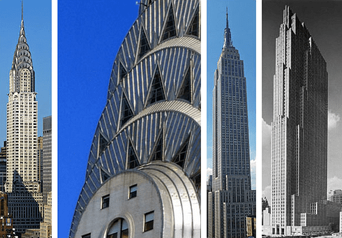 Art Deco acest stil eclectic, la început a fost făcut pur decorativ, ulterior a fost abordat în industria fabricării hainelor, în designul grafic și cinematografic, a mobilei și a arhitecturii. Acest stil a ajuns și peste Ocean la New York, unde putem vedea faimoasele clădiri Chrysler, Rockefeller Center și Empire State Building.